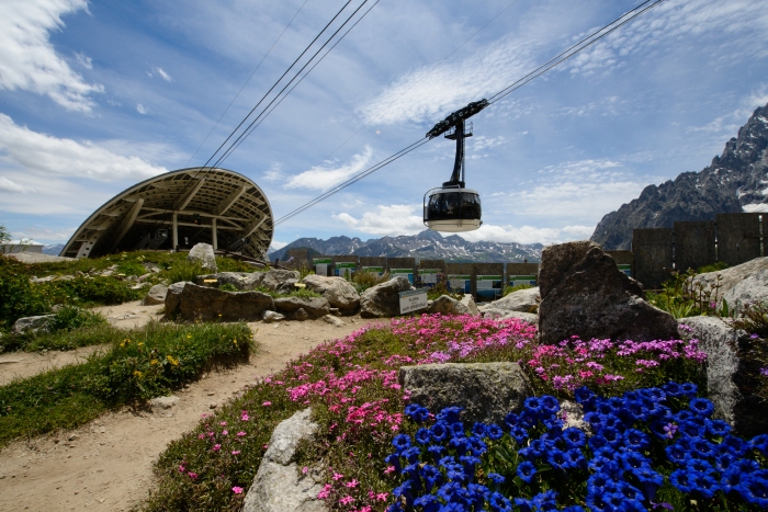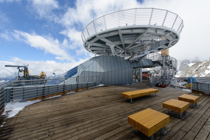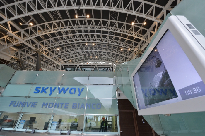 La “Skyway Monte Bianco” è un capolavoro ingegneristico unico al mondo. Il progetto deve la sua unicità alle tante innovazioni di natura tecnica, alle sfide che ha dovuto superare durante la costruzione ed alle peculiarità architettoniche. Tra queste figurano le moderne stazioni in vetro e acciaio, il concetto di sostenibilità finalizzato all’autonomia energetica e la capacità di trasporto, cui si aggiungono il fattore esperienziale dei viaggiatori, il volume dell’investimento pari a circa 120 milioni di euro ma soprattutto la realizzazione del progetto stesso.